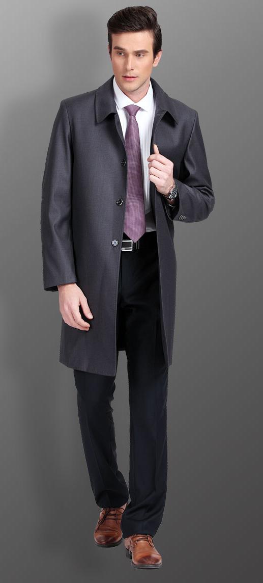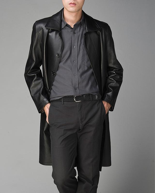 搭配技巧:深灰色韩版风衣衬衫领带裤子皮鞋(英文 短款皮衣已经很帅了,长款皮衣风衣,搭配黑色毛衣,帅出这个宝贝。