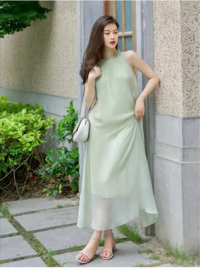 夏天绿色怎么热?街上穿绿色单品的人越来越多,可见绿色的受欢迎程度。那么对于喜欢穿连衣裙的女性来说,这个夏天怎么能错过绿色连衣裙呢?接下来,我们就来学习一组时尚达人的绿色连衣裙穿搭示范。 Look1豆绿纱连衣裙碧波绿带水钻凉鞋