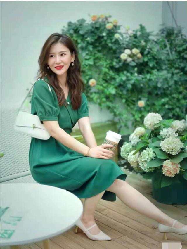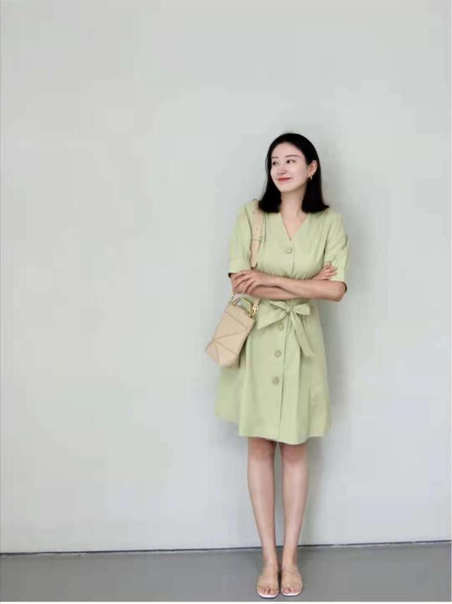 穿绿色连衣裙:通勤的感觉直接变成绿叶的精灵。最近爱绿色,充满生活气息。夏天给绿色增添一抹亮色,整个人都充满了活力。这件衣服有西装领设计,中间的腰带设计可以突出腰线,版型质感不错。简单搭配一双白色尖头高跟鞋和一个白色腋下包就是气质通勤look。 Look7绿色泡泡袖连衣裙白色皮鞋