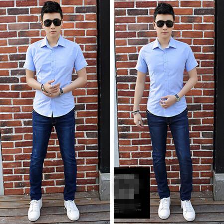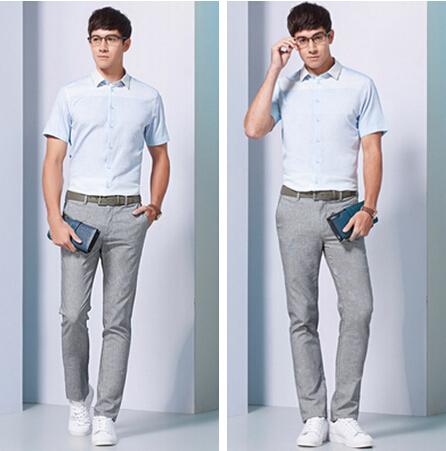 这套商务休闲风格的礼服更适合IT男。韩版浅蓝色休闲短袖,灰色休闲长裤,白色运动系。一是突出稳重,符合技术男的定位。其次,给人一种舒服的感觉。 |