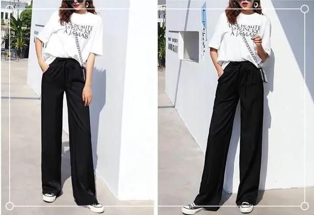 黑色阔腿裤之所以这么受欢迎,是因为穿起来特别时尚,根本没人能驾驭。白色宽松中袖宽松t恤搭配黑色高腰直筒阔腿裤,穿起来很方便但完全有型。日常生活中,这样穿起来特别抢眼,也特别低调。脚上穿休闲鞋比较有型,给人一种随意慵懒的感觉,这样穿特别舒服。 3:一字齐肩阔腿裤