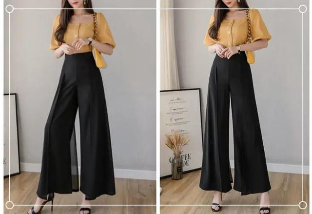 黑色短款背心搭配黑色阔腿裤,显得特别高挑显瘦,还能凸显你的腰身。外面搭配一件白色短袖开衫,看起来更时尚,更休闲。夏天穿黑色阔腿裤配外套很好看。更私人一点! 2:宽松中袖宽松t恤高腰直筒阔腿裤