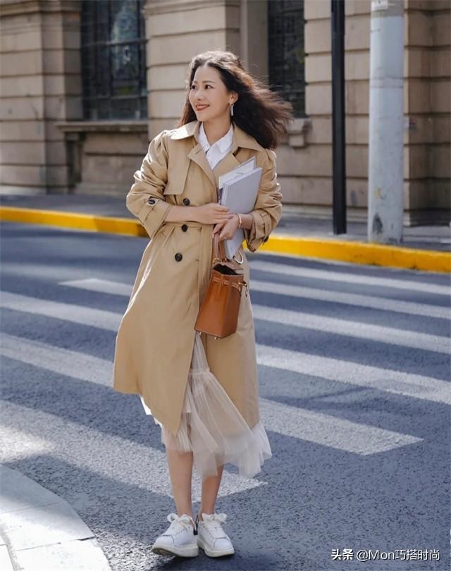 如果你选择的裙子有明显的女人味 ,比如甜美风或少女风,那你可选择无性别风格的外套或鞋子进行搭配。比如这条白色纱裙就搭配了无性别的卡其色风衣外套,配上小白鞋的休闲,整体甜度适中,又很高级。 第四篇:根据“服装设计”搭配 (一) 简繁结合搭配法则