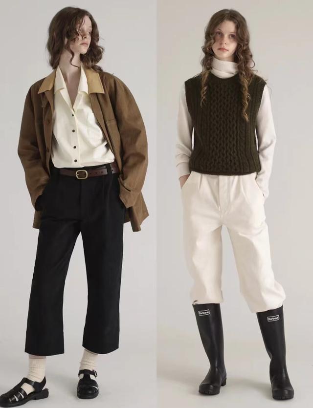 第一集:尼赫拉 Look10卡其色米色柿子红 棉袄显瘦可爱,穿娃娃领百褶衬衫,卡其布阔腿裤。两件都是百搭色,用柿子红包和围巾装饰。整套简单,小细节~