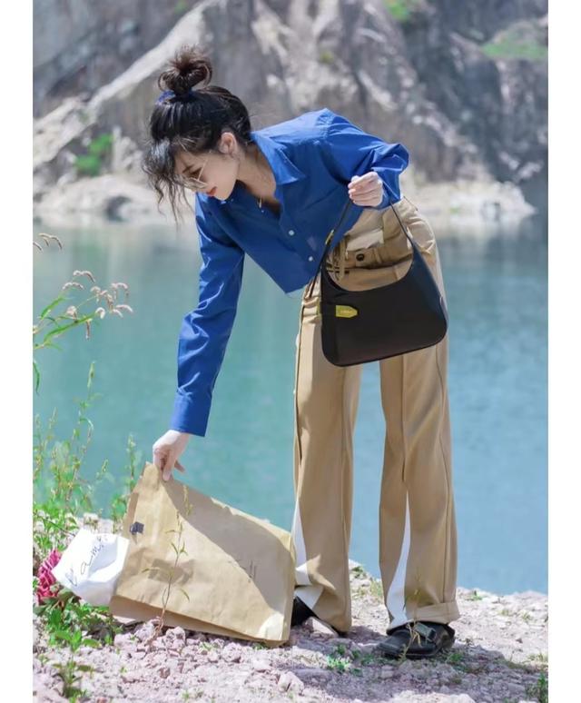 套装:她做的Tz Look4卡其色宝蓝色黑色点缀 蓝色凹凸卡其色真的很高级,是韩式的温柔感。搭配黑色鞋包,高级又不失稳重~