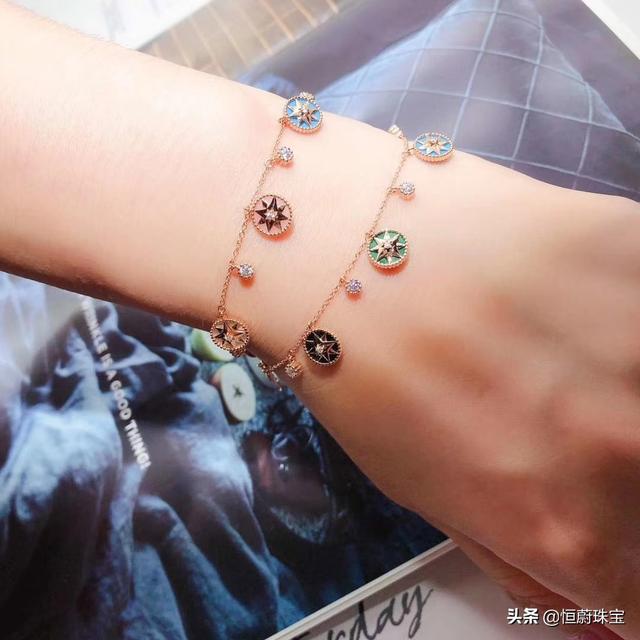 迪奥这个牌子就不用介绍了。它的指南针手环也是社交平台上经常见到的款式。佩戴迪奥指南针,指引你的幸运方向。材质为:18k金镶嵌天然白贝、粉色宝珠、黑玛瑙、孔雀石、绿松石。我不喜欢复杂的5罗盘手环,选单罗盘也挺好看的。