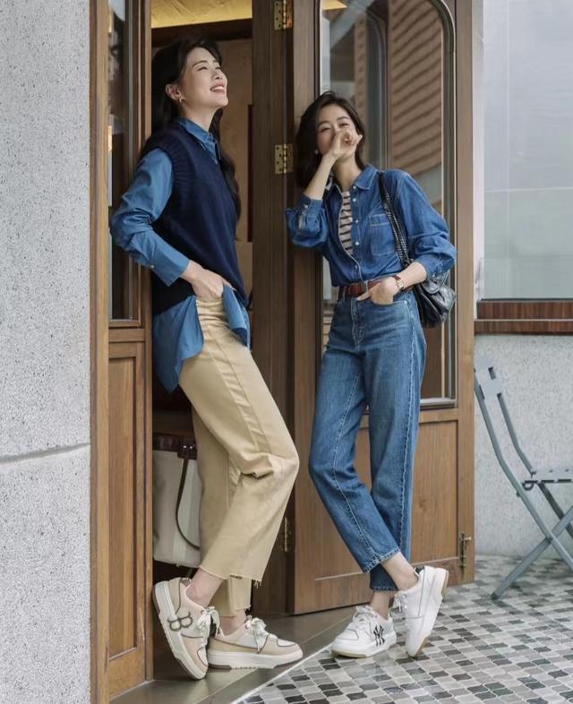 4.九分卡其布裤,百搭之王。 卡其布裤子和牛仔裤一样具有多功能性,可以搭配衬衫、毛衣、大衣等。并且搭配一双白鞋,时尚感十足~