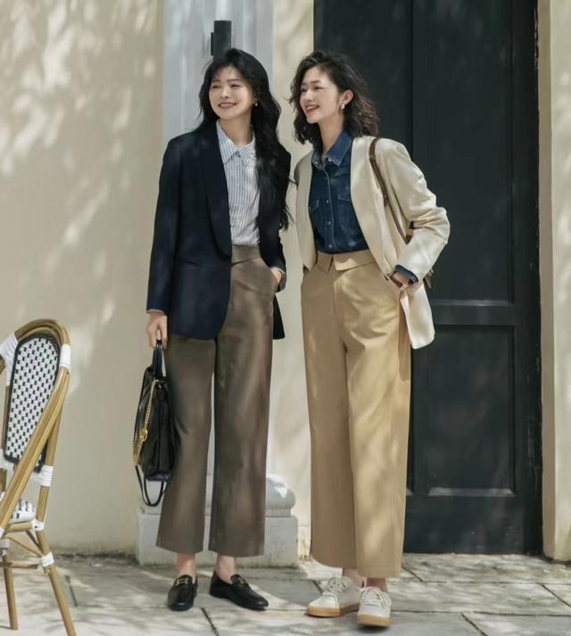 4.九分卡其布裤,百搭之王。 卡其布裤子和牛仔裤一样具有多功能性,可以搭配衬衫、毛衣、大衣等。并且搭配一双白鞋,时尚感十足~