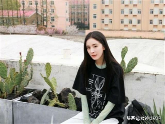 看,t恤t恤 杨幂选择宽松的短t恤搭配修身的长t恤。这种穿着方式是最常见的,甚至在迪丽热巴也是如此。虽然是简单的t恤,但是如果要细分的话,可以分为干净t恤,干净t恤印花t恤,网布t恤,款式不同。