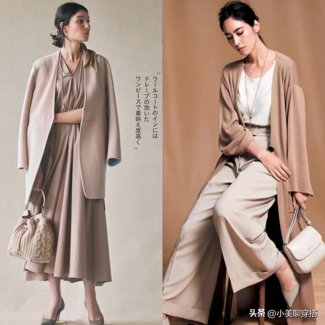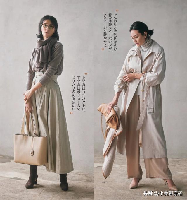 秋冬,40岁以上的成熟女性,大地色系也是特别推荐的色系。她们温暖有力,沉稳低调,非常符合一个40岁女人的气质,手头有一种高级感。 卡其布 很多女生喜欢大地色,但是有时候因为怕它肤色暗沉而不敢穿。对于肤色偏黄偏黑的女生,可以选择温和的卡其色,这是一种介于驼色和米色之间的颜色,白色高级。 卡其色风衣搭配白色高领毛衣,这个配色特别白,又有一种冷疏离的味道,很有高级感。搭配浅驼色阔腿裤,整套一个色系,简约又高贵。