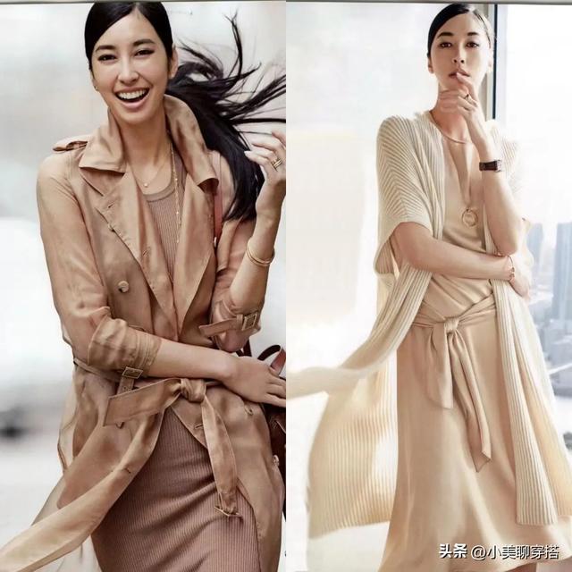 还有一种驼色叫冷漠驼色,是浅驼色。比金驼色温和,不挑肤色。对黄皮肤的女生也很友好。 冷漠的驼色风衣,内搭同色系针织连衣裙,搭配同色系满满的高级感,而且特别适合成熟的女生,更容易穿出质感。