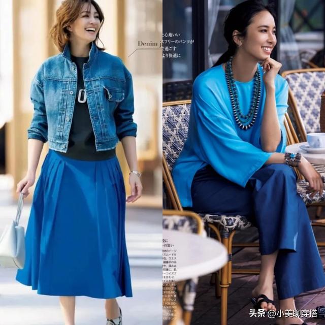 克莱因蓝是今年超级火的颜色,它属于蓝色最最纯粹的一个颜色,浓郁安静充满了知性高雅的味道,而且特别显白,它也是特别适合中年女性的颜色。 简约的克莱因蓝长款衬衫,搭配藏蓝色阔腿裤,两种深浅不同的蓝色搭配起来,显得格外高级,有一股岁月静好的美,很符合成熟女性从容淡定的气质,高级感十足。