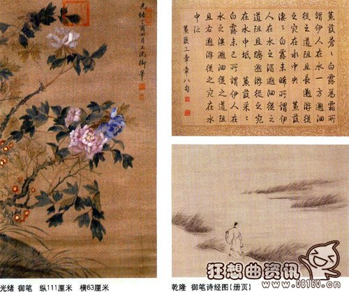 乾隆是我国历史上著名的“文人”皇帝,他不仅擅长书法,而且好诗词题字,是历代留下诗词和墨迹最多的皇帝。但其绘画作品却很少被人提及,这是因为乾隆皇帝自认画技“一般”,自己不愿以画示人,大多数画作当时就已毁掉,只有少数乾隆本人认可的画藏在紫禁城的各个楼台轩宇中,外人难得一见。现存乾隆的画,部分藏在故宫博物院中,余下的由于战火、历史等原因已经散落在民间了。与乾隆的绘画相比,其御笔书法更值得玩味,价格也更高。