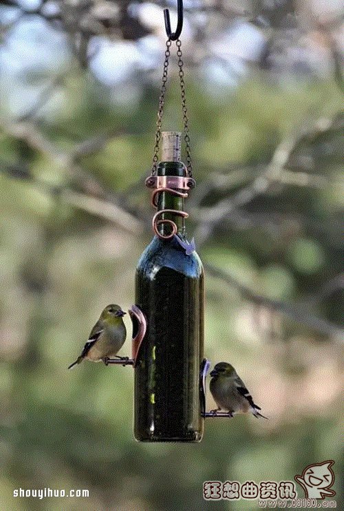这个技术性极高的精美装饰很难自己DIY出很好的效果——瓶口需要完美地切割,配套的零件也不是随便就能找到,给小鸟站立的支架也不好安装·····不过,从这个有爱器件和小鸟共存的和谐画面可以感受到分享是一件多么快乐的事情。