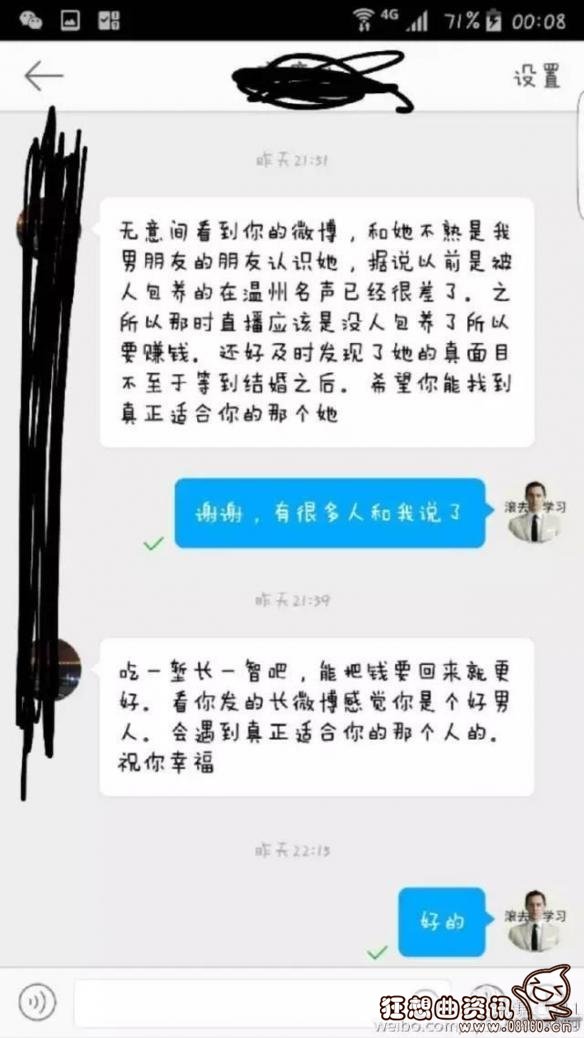 各说各有理,是非真难断。不过也有网友质疑这是两人为了博眼球,吸引关注的的一次炒作行为。现在,该女主播微博内容已经删除并更换了名称,男子则在微博称女主播已经还他7万元。