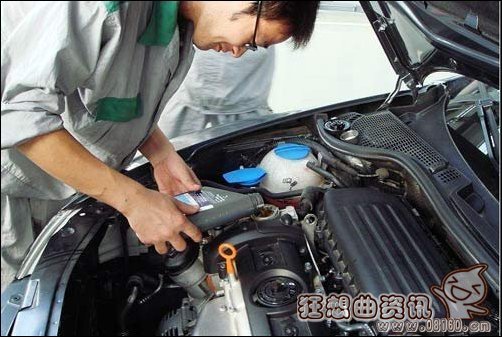 检查时要把车停好,拉紧驻车制动器,启动发动机,达到正常工作温度时,关掉发动机,等几分钟,让机油流回油底壳。这时再取出机油尺,将其擦干后插入,重新取出检查机油油位,若在机油尺下端的“最低(MIN)”和“最高(MAX)”标记之间,则表示油量正常。若低于“最低(MIN)”,就要适量添加机油。