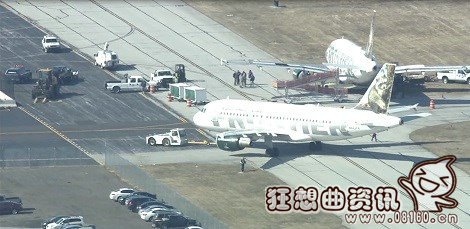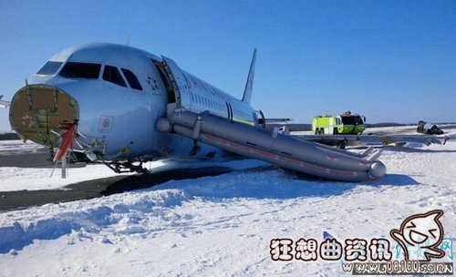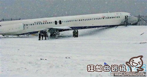 实拍飞机因降雪冲出跑道