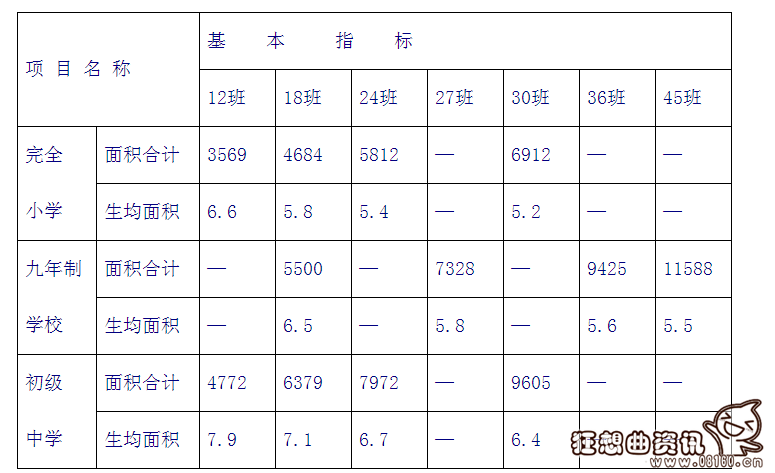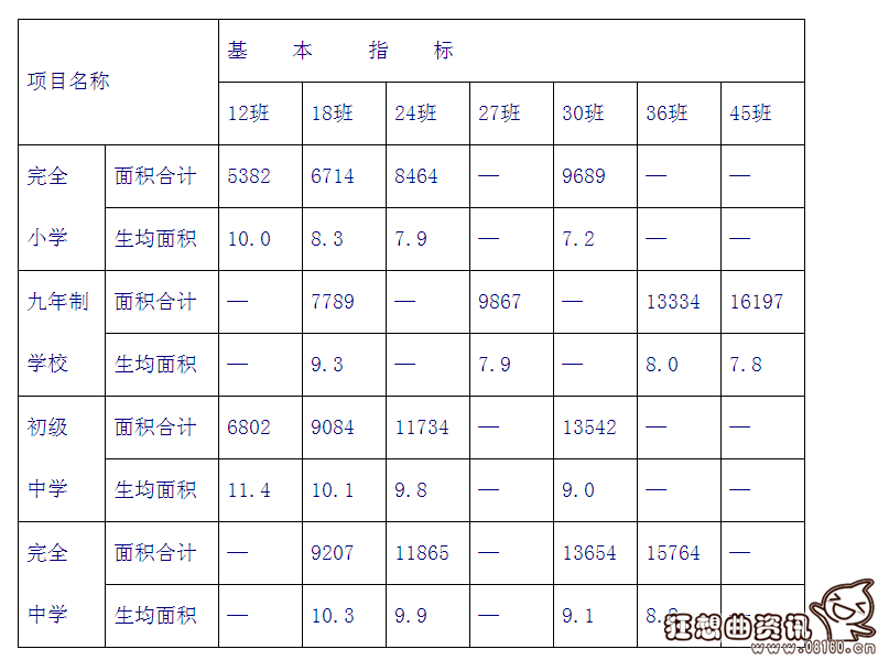 一、城市普通中小学校校舍建筑面积指标分规划指标和基本指标两部分。学校若分期建设,首期建成校舍的建筑面积不应低于基本指标的规定。