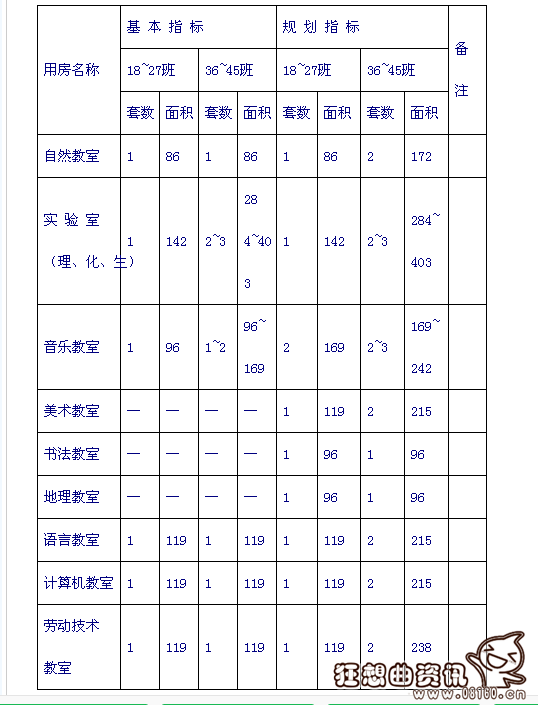 中小学生校舍建设最新标准
