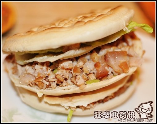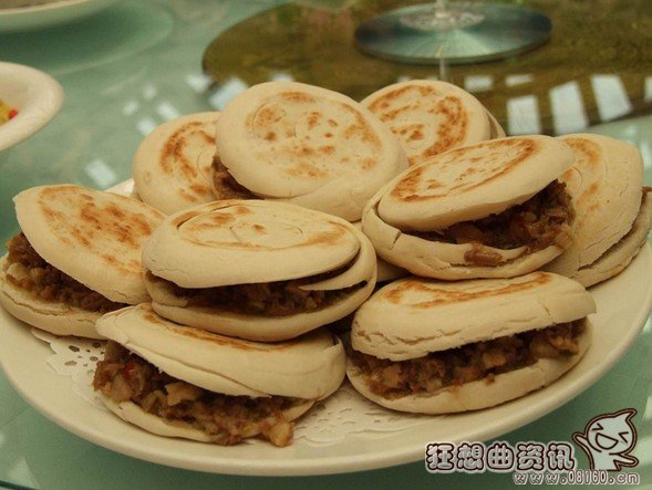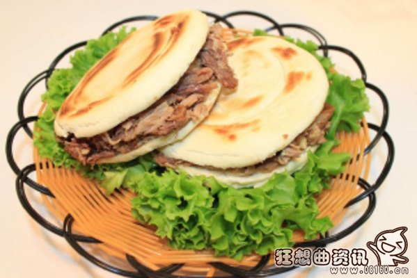肉夹馍是古汉语“肉夹于馍”的简称,中国西北特色小吃之一,以陕西地区的“腊汁肉夹馍”(猪肉)和宁夏地区的“羊肉肉夹馍”为主。腊汁肉夹馍是陕西省著名西府小吃和西安著名小吃。