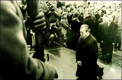 ![]() 德国总理科尔下跪道歉现场图 世人都知道60年前发生的第二次世界大战,是以德国1939年9月1日向波兰发起“闪电战”为起始标志的。在这场由德、意、日法西斯发动的空前规模的战争中,先后有60多个国家和地区参加,有20多亿人口卷入,给世界人民造成空前的浩劫和灾难。远的不说,光我国在8年抗战中,就有3500万人伤亡,损失6000亿美元的财富。这场战争的罪魁祸首,德国的希特勒、意大利的墨索里尼和日本的东条英机,已经永远被钉在历史的耻辱柱上。 当事国如今是如何看待这场战争的呢?1970年12月7日,波兰首都华沙银装素裹,寒气逼人。来访的联邦德国(时称西德)总理勃兰特向无名烈士碑献完花圈后,默默无言走到一旁的犹太殉难者纪念碑,突然双膝着地,跪在纪念碑前湿漉漉的冰冷的大理石上!勃兰特这一超出礼仪的惊人之举,感动了成千上万的波兰人,使在场的来自世界各地的外交官和记者无不动容。勃兰特青年时期就从事反纳粹斗争,被迫流亡到国外,作为一名反法西斯老战士,可以说他同纳粹德国没有任何瓜葛,面对这些被纳粹党卫队杀害的600万犹太苦难亡灵,勃兰特良心上没有任何负担。但是他没有回避自己作为联邦德国总理的历史责任,当时他说了这样一句名言:这是“替所有必需这样做而没有跪下的人下跪”! ![]() 勃兰特下跪之举尤其震撼了德国人的心灵。当时的民意调查显示,80%的德国人认为用这种方式更能充分表达德意志民族集体悔罪的诚意,此举也赢得了波兰人和全世界的理解和信任。1971年度的诺贝尔和平奖授予了这位下跪的总理。无独有偶,1995年6月,统一东西德的历史大功臣科尔总理在访问以色列时,再次跪在以色列的二战犹太死难者纪念碑前。 ![]() “清算过去”、“永远不再由德国发动战争”,是德国战后最常见的政治口号。上至国家元首,下至普通百姓,对德国历史上曾发动两次世界大战的罪行都有深切认识,他们对受害国人民怀有一种深重的历史负罪感。德国的主流社会、朝野主要政党,特别是政府政要,在对待战争罪责的立场和态度上始终如一。他们敢于直面历史,勇于承担历史罪责,利用一切机会向受害国人民认罪,并以实际行动清算过去,赢得了过去受害国政府和人民的谅解和信任。 ![]() 1949年12月7日,联邦德国第一位总统特奥多尔·豪斯在一次集会上谈到纳粹对犹太人的罪行时说:“这段历史现在和将来都是我们全体德国人的耻辱。” 1985年5月8日,联邦总统魏茨泽克在二战结束40周年的纪念活动上说:“我们德国人醒悟到,历史问题是无法超越的,是难以洗刷掉的,也是不能回避的。无论我们大家有罪与否,也无论我们是老是少,都不得不接受历史,我们大家都受到历史后果的牵连,都要对历史承担责任。” 1994年8月1日,统一后的德国总统赫尔佐克在波兰纪念反法西斯起义纪念大会上,再次向波兰人民谢罪。他说:“我在华沙起义的战士和战争受害者面前低下我的头,我请求你们宽恕德国人给你们造成的痛苦。”1998年11月,赫尔佐克在纪念犹太人惨遭纳粹屠杀和迫害的大会上指出:“60年前,对犹太人的屠杀是德国历史上最恶劣、最无耻的事件,国家本身成了有组织犯罪的凶手。” ![]() 1995年8月,德国总理科尔出席了在莫斯科举行的纪念战胜纳粹德国50周年的活动。他在致词时也表示:“我向死难者你们请求宽恕。我们在莫斯科缅怀遭受过希特勒造成的种种灾难的俄罗斯人以及前苏联其他民族的人。” 德国基督教委员会在战后初期也不回避德国人特有的心理负担问题。斯图加特教区的主教说:“我们给世界人民和国家带来了无穷的灾难……我们谴责自己。我们没有更大勇敢地承认过错……现在我们要改弦易辙,重新开始……在一个民族的生命中可能会出现这样的阶段,在这一阶段中,赎罪是惟一可能的态度,从而也是这个民族的历史行为。” 德国人不仅下跪忏悔,而且给予物质赔偿。联邦德国第一位总理阿登纳在1951年9月27日发表的一项政府声明中表示:“新的德意志国家及其公民只有感到对犹太民族犯下了罪行,并且有义务作出物质赔偿时,我们才算令人信服地与纳粹的罪恶一刀两断了。”从第一任总理阿登纳开始至今,德国已向以色列、波兰、法国、希腊、俄罗斯等支付了711亿马克二战赔款。 光物质赔偿还不够,1994年德国以法律形式规定:凡喊纳粹口号、打纳粹旗帜和佩戴纳粹标志均属违法,都要给予刑事处罚。德国在战争罪责问题上坦诚和自觉的反省态度,赢得了世人的理解和信任,为它在战后融入国际社会,在国际舞台发挥更大作用创造了必要的前提条件。 科尔的夫人资料照片 科尔与他在1948年就认识的一名外语秘书Hannelore Renner(1933年——2001年)结婚,婚后拥有两个儿子瓦尔特·科尔(1963年出生)皮特·科尔(1965年出生)。 2001年7月5日科尔68岁的妻子Hannelore自杀身亡。自杀原因据推测可能由于多年患有日光性皮肤炎(Photodermatitis)皮肤病。 ![]() ![]() ![]() ![]()