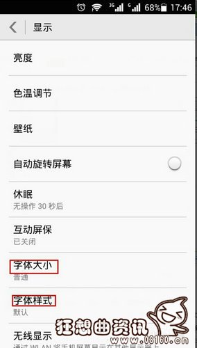 3、就会看到“字体大小”跟“字体样式”两个选项。这也就是修改华为手机字体的地方了。