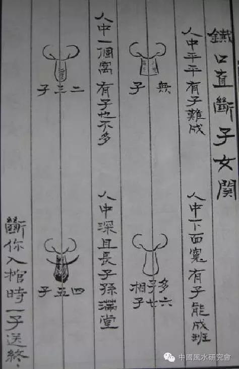 安徽相法过三关真诀窍 《安徽相法》有其独特的技巧和方法。用眼瞄人一眼,就侃侃而谈,父母存亡,弟兄几个,排行老几,子女几个,阴阳宅状况,百发百中,无不令人惊叹! 安徽相法全称是安徽相法风水,它既可以断人生大事,断六亲体系,断人生运气,又可以断家居风水,祖坟风水。目前全国正宗安徽相法之人不会超过百人,并师出一家,由此可见安徽相法的保密性。 民间相术的“过三关”,即第一关:父母关、第二关:兄弟关、第三关:子女关,尤其是第三关,古今都是从眉毛上判断的,然而技巧和秘诀却鲜为人知。 第一关:相术慧眼“过三关”,首断父母谁先亡? 额上三纹天、地、人,天父地母人自己,天纹断无父先亡,地纹断无母早殃。印堂“玄针”纹粗显,刑夫(妻)斩子灾必见;“玄针”靠上克父母,“玄针”左斜先送父;“玄针”右斜早死母,“玄针'居中克夫妻;“玄针”靠下定克子,男左女右断无误。 嘴唇厚薄看父母,上唇为父下唇母;上唇包下母先亡,下唇包上父冥乡。手掌天、地人三纹,天纹为父地纹母; 天纹断损父先逝,地纹断损母故去。双手母指分父母,指头为父二节母;指头伤残父故去,二节伤残母冥府。 第二关:相术慧眼“过三关”,二断看准生女男! 男女眼角仔细看,眼角朝向定女男;眼角朝下必生女,眼角向上定生男;如果预测有误差,先由夭折坠流产。 印堂“玄针”纹粗显,刑夫(妻)斩子铁口断。 先女后男子女顺,若先生男儿重残。生男生女看人中,凹凸深浅定儿女;人中凹坑深生男,人中包凸平生女;人中正中竖直线,命主有子不见面。握拳观察小指丘,侧看生男横纹粗;纹细短浅断生女,无纹无婚子难求。 第三关:兄弟姊妹“过三关”,断有几个排行几? 其实每个人的眉毛都是由大眉毛和小眉毛前后两段或称两截也叫两块眉毛组成的。A》由眉头至眼珠,多达眼尾的前段(截、块)眉毛称为大眉毛(眉长黑浓)。B》由眼珠之眼尾或超过眼尾且浮于大眉毛尾部之上的后段(截、块)短小而黑(或淡)的眉毛称为小眉毛。 大眉毛的作用是:判断其人兄弟姊妹多少?小眉毛的作用是:断定其人排行老几? 大眉尾占眼珠比,眉尾占珠一小半,兄弟姊妹孤独单。大写一字、八字眉,塌山、担山、谷根眉;兄弟孤单独一人。 大眉尾占眼珠比,1/2或2/3,尾不过珠兄妹二。大眉尾占眼长半(1/2),尾达眼珠外侧边,不超眼珠兄妹三。眉尾占眼长大半(2/3),尾超眼珠外侧边,超过眼珠兄妹四。大眉毛尾过眼角。 安徽相法祖传看图详解 其实一开始看到安徽相法的秘诀,很多人是不相信的,但如果你加上安徽俩字,很多人就马上视之若宝。用着很成功,很有价值,这就证明真的有这样的相面绝技。 下面我们来看一下安徽相法祖传看图详解: ![]() ![]() ![]() ![]() ![]() |