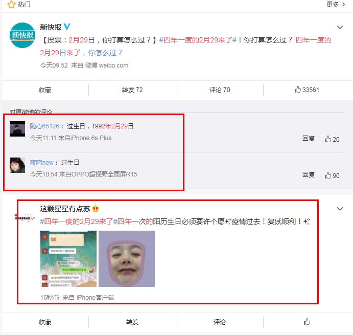 ![]() 那么为什么每隔四年会的2月份会多出来一天呢?这是因为地球公转一周,并不是365天整,而是还要多出大概6小时。如果不是每隔几年设置一个2月29日,这个误差日积月累,过不了几百年,元旦就跑到夏天去了。 大家想一下,每隔几年多设置2月份一天,3月份来临的日子 每四年往后拖1天,正好保持季节和日期的对应,要不然几百年后就乱套了。 小编刚才在微博上看到有一个调查,说四年一次的特殊日子,大家想怎么过?后面很多评论说,要先过生日: ![]() 因为在这一天,全中国必定还是会有大量孩子出生,而目前户口本上的生日日期都是标注的阳历的,这样一来大部分年份都是没法过阳历生日的,当然比较有生活仪式感的人会选择过阴历生日,而一些对生日不太在意的人直接不过就行了。 最后,让我们一起祝福这天出生的人生日快乐吧! |
