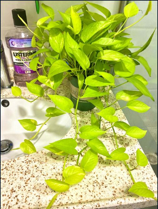4、卫生间适合摆放黄金葛,一种类似绿萝的绿植,有招财纳福,净化污秽的作用。