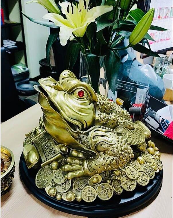 在财位摆放富贵竹,铜制的三腿金蟾。