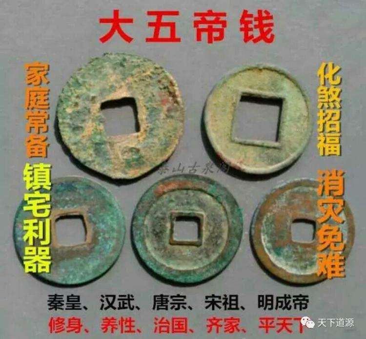 ![]() 而大五帝钱则是指的:秦皇、汉武、唐宗、宋祖、明成帝,这五位历史上最著名的皇帝拥有雄才伟略,在历史上留下了浓重的一笔,所以这五位皇帝时期发行的钱币叫大五帝钱,大五帝钱的作用要比小五帝钱的作用更好,但是也是特别难以获得的。 ![]() 用五帝钱挡煞辟邪,最好选择民间一直流传下来的五帝钱,而不是从地下挖出来的五帝钱,民间流传下来的五帝钱是千万的活人用过的,沾染过千万人的阳气,所以挡煞辟邪的效果更好。 ![]() |