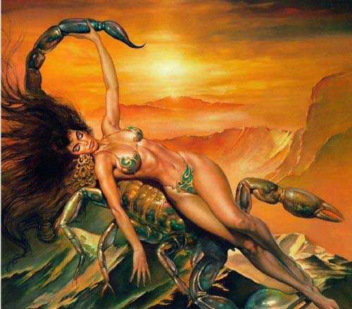 就第七日宫的所有模式来讲,天蝎和金牛各自都感觉到对方具有能使他(或她)自己完整与圆满的那些品质。他们在占星术轮盘上相反的磁极一直对他们产生着影响。天蝎座人恰恰是金牛座人想成为的样子,而金牛座人也恰恰是天蝎座人愿意成为的样子。不过,他们中任何一方面都几乎是死也不愿意承认这一点。天蝎不是具二重性的宫,而天蝎们却同时生活在两个世界里——一个世界是他们的精神追求要带他们去的地方,另一个是可见的、物质的世界。天蝎们飘游于二者之间,这是他们自己的法则,像大金字塔一样不可思议的法则。天蝎们不愿让人们见到他们在空中飘游的样子,而想伪装起来,因此他们中大部分人带着假面具,那假面具可能是温文尔雅,冷若冰霜的超脱或冷冰冰的实用主义。但在假面具下面,他们都有热情奔放的世界,就像一个火烧灼的大锅一样翻滚和沸腾着。