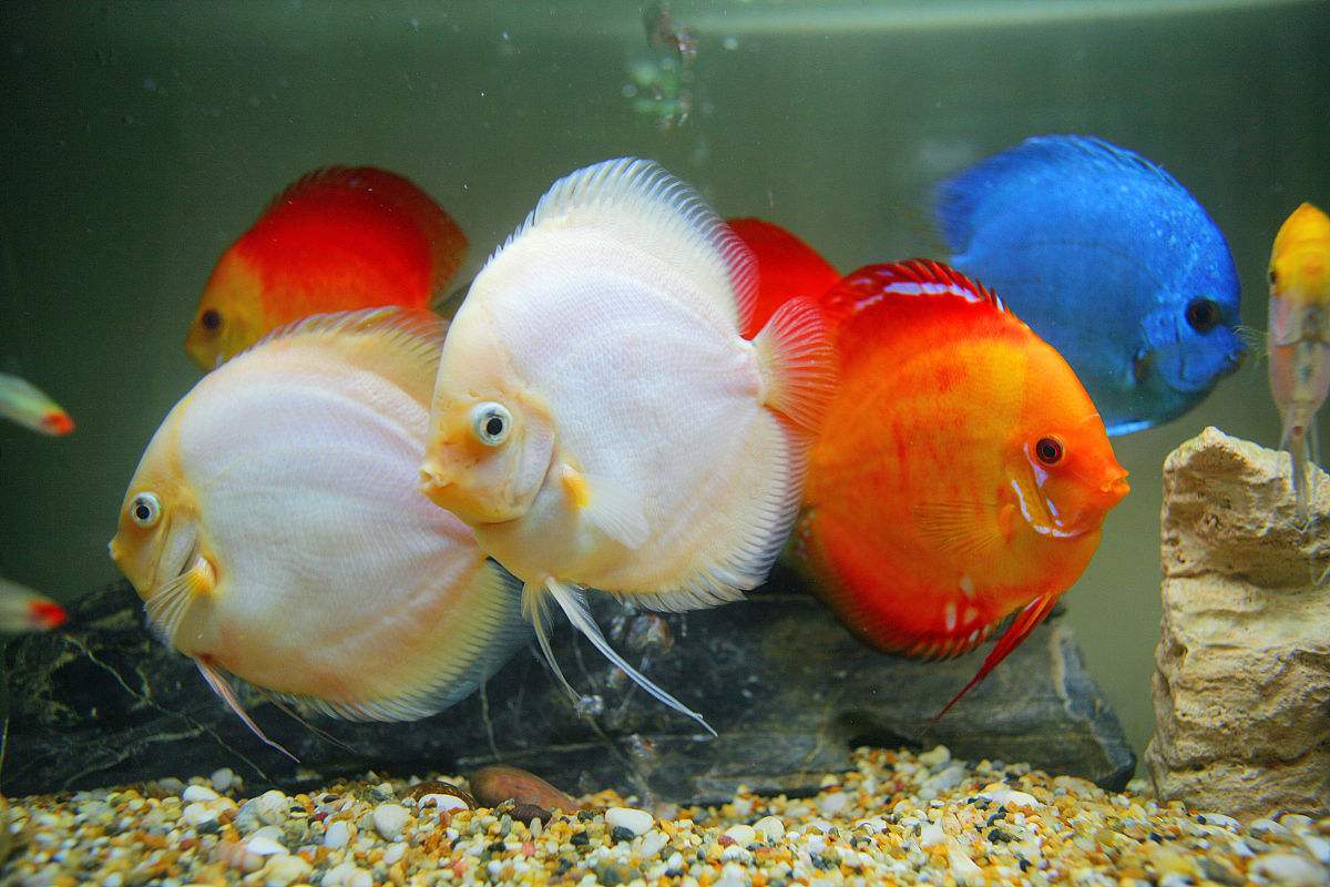 第四,红龙鱼混养的鱼只也可以考虑七彩,七彩喜群游,和红龙鱼混养可以给鱼缸增加观赏性,给家中再带来份生机!