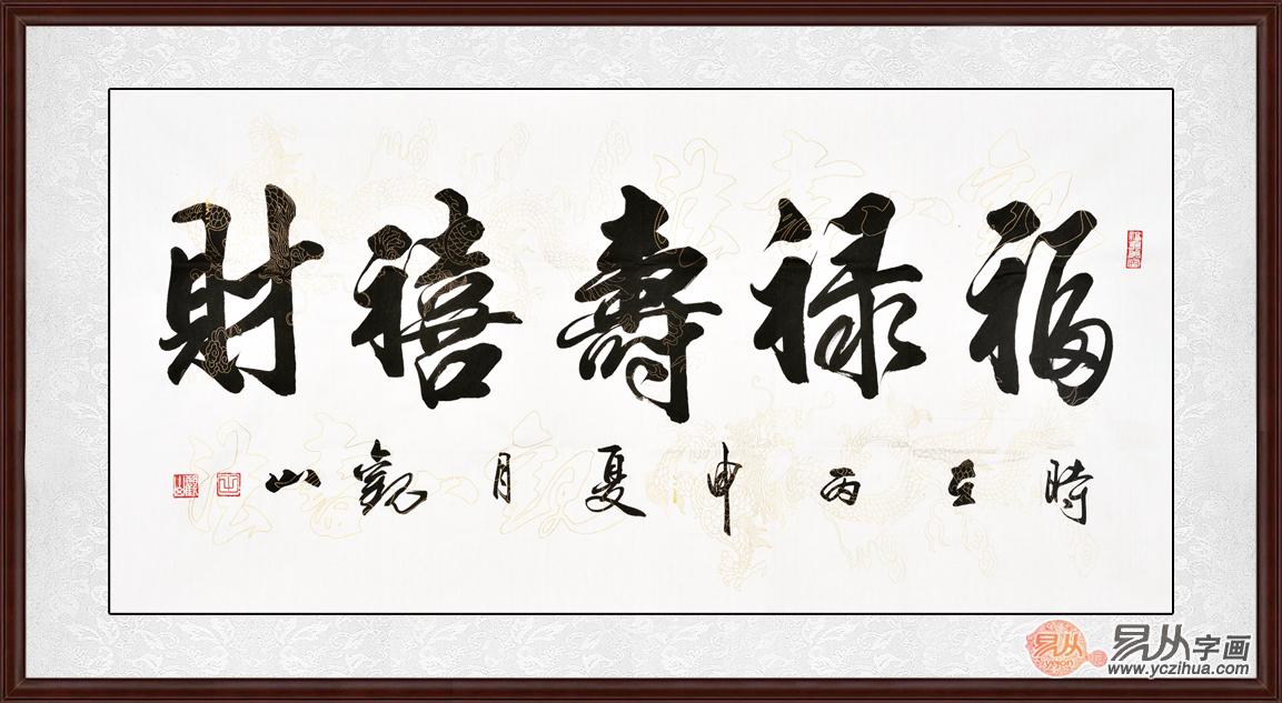 二、有的人看重风水,想招财纳福,或许他会在家里客厅挂幅寓意吉祥、幸福的书法作品。比如福禄寿喜财、福寿康宁、福寿绵长、寿山福海、厚德载福、天赐鸿福、家和业兴、家和万事兴、宝地生金等。