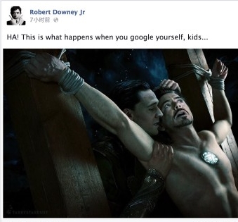 《钢铁侠》影迷大胆虚拟小罗伯特-唐尼和洛基的同性恋故事,引得小罗伯特-唐尼本尊不得不上谷歌一探究竟。