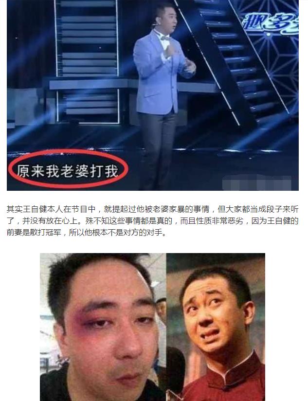 王自健80后脱口秀一炮走红,因为跟合作人李诞、池子等闹的不愉快,后来又因为抑郁症几乎赋闲在家,最近凭借安家里的角色再次走进大众的视线。曾经在家的一段时间王自健非常的落魄,一度还被自己的老婆家暴,以前王自健说自己被老婆揍,很多人以为是段子,没想到是真的。