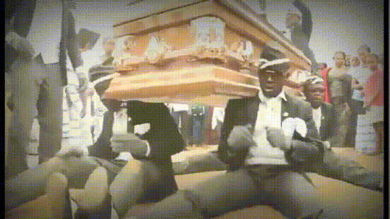 ![]() 其实这是发生的加纳的真实故事,世界上不同地方对待死亡的态度不一样,而在加纳,他们认为死去是生命新的开始,他们会用欢快、热烈的舞蹈来对逝去的生命做最后的赞礼。 不少抖音上的人看到这个视频后一位是鬼畜,是恶搞,没想到是当地风俗习惯。 黑人抬棺这个梗的的意思就是:在本来悲伤的场合,做不和事宜的动作、行为,让人感觉很怪。 ![]() 下面是原版的黑人抬棺的视频,一切恶搞起源于此 B站上有高手对他们的行为做了一个非常妙的总结: 一身黑色的着装,隐藏着死寂,白色的领带,代表着他们对逝去生命的缅怀,看似简单而又欢快的舞步中,却又流露出黯然的忧伤,一次次的敬礼,无不代表着他们对逝者崇高的敬意,明明与死亡肩并肩,每天与亡者共舞,但他们的眼神坚定不移,如此的锐利,因为他们知道他们肩上的使命…… |
