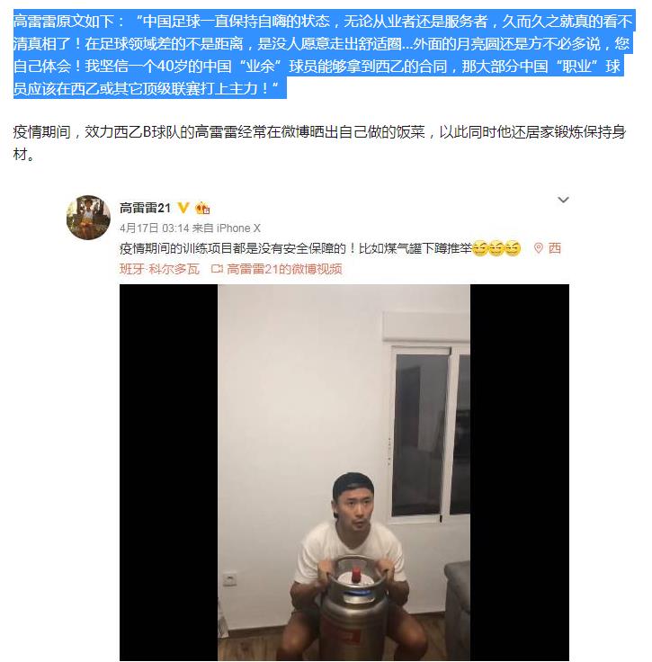 ![]() 那么高雷雷为什么不在国足踢球呢? 我们看高雷雷的退役说明以及前段时间高雷雷对国足球员的批评应该可以看出,高雷雷是不愿意在国内这样的足球环境下踢球,认为国内球员喜欢“自嗨”,不愿意走出舒适圈,怕去了国外耽误发展,还赚不到钱。他说自己是40岁的“业余”球员都可以通过努力在西乙踢球,相信国内大部分球员只要稍微努力一点,都可以比他要混的好,只是没人愿意这么做而已。 其次,高雷雷在一次慈善的纪录片中也说过,自己本来有能力进国足,但是因为性格原因,有些人就是不让他进,去国外发展也是有点迫不得已的意思。 ![]() 不少人对高雷雷的认知还停留在99年绝杀辽宁队的那一次,但是实际上这些年高雷雷一直在为国内足球事业努力,做了很多慈善,比如兴建了不少足球场,只不过不知道为何始终翻不起水花。 ![]() 据悉高雷雷的妻子是歌手马郁,1984年8月4日出生,毕业于北京电影学院导演系, 代表作品有《下辈子如果我还记得你》《如今你在谁的身边》《念念不忘》《深不可见》,两个人是在高雷雷第一次退役的时候认识,当时马郁在四川支教,而高雷雷则在四川做慈善,做希望小学。目前网络上还有传言说高雷雷曾经跟演员高洋谈过恋爱,但是最后没有在一起。 下图为马郁和高雷雷的合照 ![]() |
