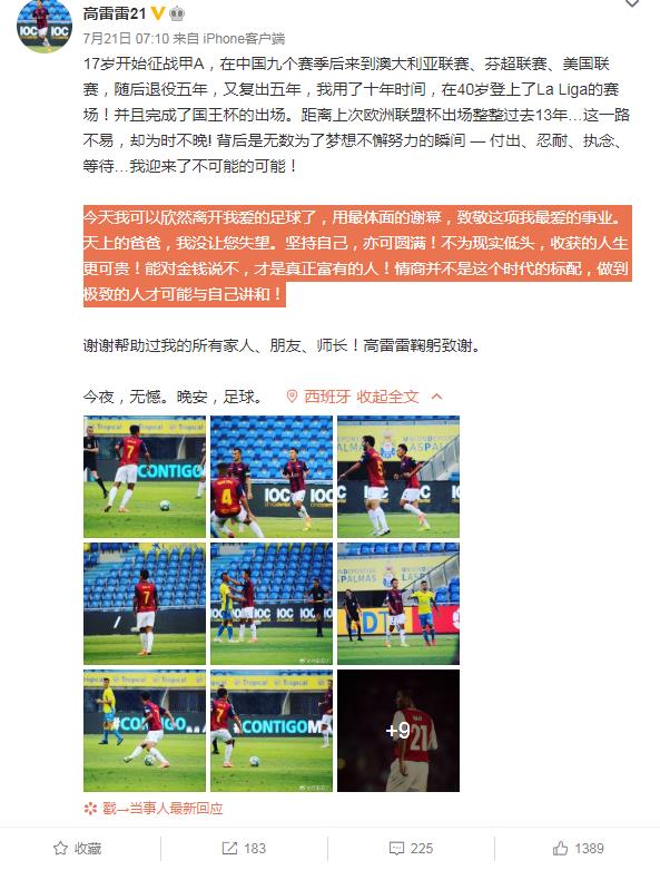 昨天高雷雷宣布退役,这次是真的退了,毕竟年纪大了,1981年出生的高雷雷已经将近40岁了,他17岁开始征战甲A,此后又先后去澳大利亚、芬兰、美国等地踢球,期间退役过5年,后来又接着踢了5年,总之他的足球生涯十分波折,但是也充满传奇,因为长年不在国内踢球,在国外也不是大联赛,所以在国内高雷雷的名字并不是十分响亮。