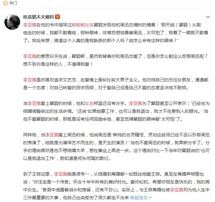 ![]() 我们看海哈金喜的微博上经常有参加公益活动,再加上李亚鹏还有一个嫣然基金会,是专门针对儿童兔唇的公益基金会,所以有网友分析两个人可能是因为共同出席活动而认识,并最终走在一起的。目前李亚鹏是单身的状态,找女朋友是无可厚非的,不过有网友说李亚鹏的换女友速度太频繁了,去年刚刚找了一个唱爵士的文字工作者,今年又马上找一个模特,希望明年李亚鹏的女友还是海哈金喜。 ![]() 其实李亚鹏的前女友们远不止上面讲到的这2位,柯蓝、瞿颖、周迅、以及后来结婚了的王菲都曾经是李亚鹏追求过的女人,而且每一短感情开始的都非常的热烈,但是最终却草草收尾,他公开的第一个女朋友是柯蓝,然后在还没跟柯蓝分手的情况下爱上了瞿颖,然后再跟瞿颖恋爱过程中爱上了周迅。。。总之电视剧都不敢这么演的情节都发生了。 ![]() |