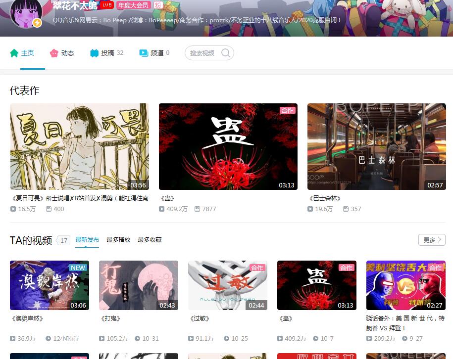Bo Peep在B站上的账号为:翠花不太脆,所以粉丝们也就跟着叫翠花了。