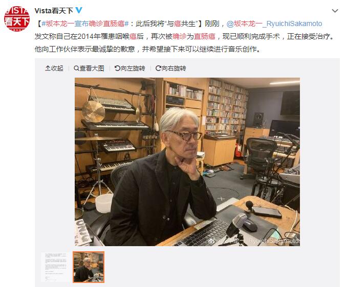 日前,日本著名音乐家坂本龙一在微博发文,宣布:此后我将“与癌共生”,坂本龙一曾在2014年时患咽喉癌,一度治愈后又再次确诊直肠癌,目前已经手术完毕处于恢复中。