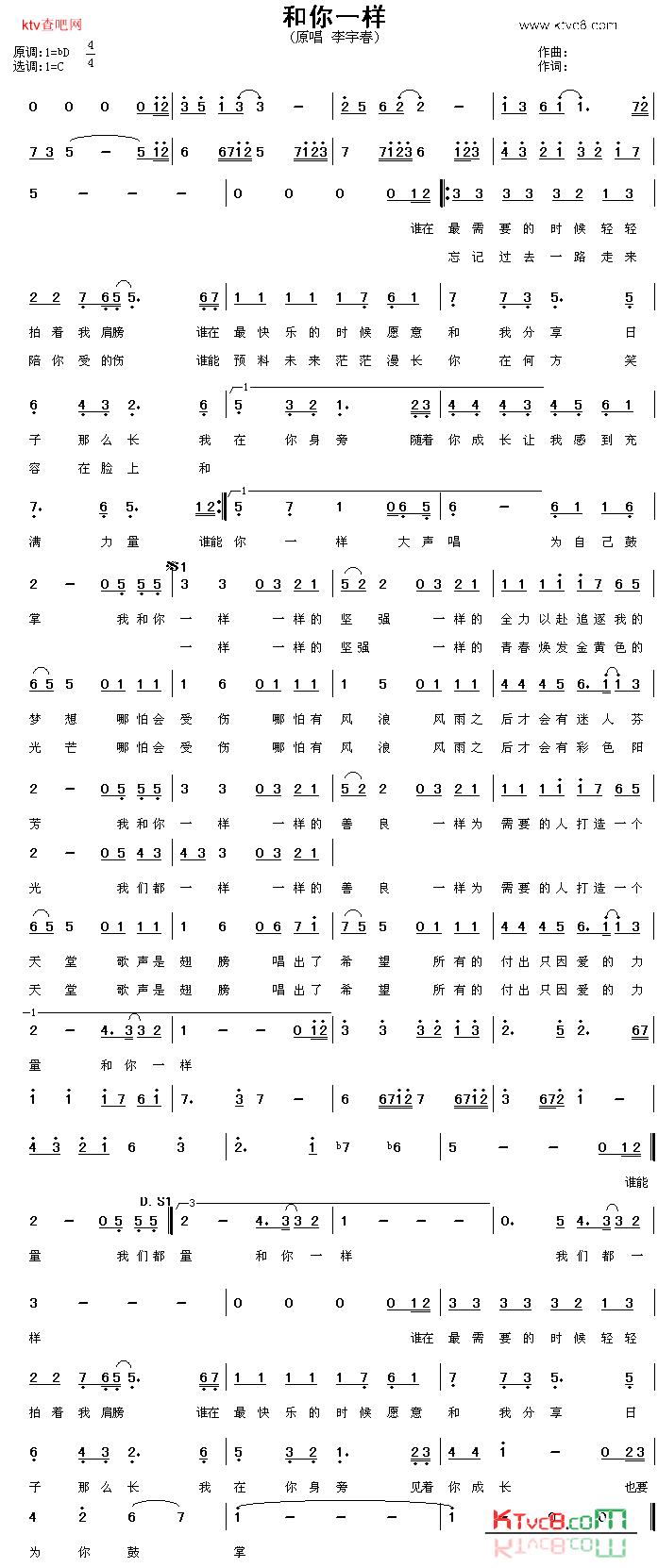 另外,这首歌的歌名叫《和你一样》,这首歌还有一个深层的意思就是“鼓励哪些在困境中的善良的人们”,我们都是一样的,要坚强、要善良、要为自己喝彩、鼓掌,不要被困难打倒,去“全力以赴追逐我的梦想”,因为“风雨之后才会有迷人芬芳”。 下面是完整的歌词 ![]() |