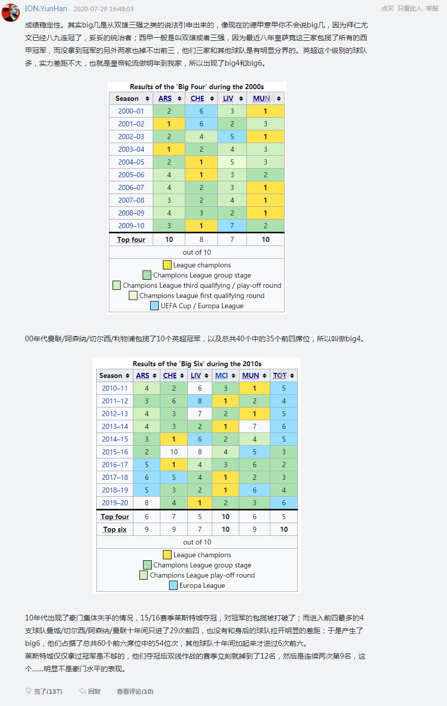 ![]() 据悉,欧超联赛总共有12个创始成员,其中有英超的BIG6,分别是:曼联、曼城、利物浦、切尔西、阿森纳、热刺,下面是欧超联赛的12个成员,标叉的是退出的BIG6。 ![]() 下面是则是12支球队的老板,包含英超BIG6的老板名单 ![]() ![]() ![]() 英超BIG6实际是按照球队的影响力、战绩、营收等综合排名来的,不单单看英超的赛季排名和积分榜排名。当然,网友也喜欢将英超每个赛季的积分排名的前6名称呼为“新的BIG6”,但是这样的叫法球迷是不认可的。对于BIG6的诞生和渊源虎扑网友@ION.YunHan说的非常详细,大家可以参考: ![]() |