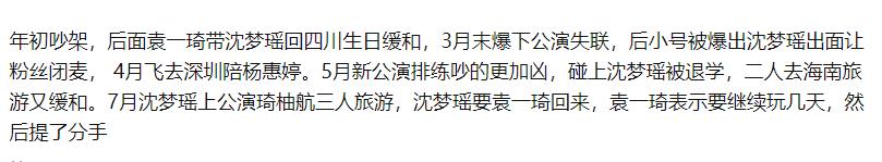 但凡是袁一琦或者是沈梦瑶的粉丝都要去了解这两人的另一个人,因为她俩常常是捆绑出现的,她们的名字常常并列被人们提及,她们的故事也被网友们时说时新,很多新粉就有点懵了,到底袁一琦和沈梦瑶之间发生了什么?据说俩人真的在一起恋爱实锤了吗。 袁一琦和沈梦瑶之间发生了什么? 袁一琦和沈梦瑶之间发生了CP事件,两人的CP感和CP举动那是粉丝可见可议论的,也是两人一直在荧幕前给粉丝营造的,两人常常有亲密的互动,有暧昧的眼神,还有纷争吵闹,更有网传的吵架分手等等。 总之袁一琦和沈梦瑶的故事是比较劲爆的,在网上掀起很大风波的,很多粉丝关注和议论,以及对整个事件都有自己的独特见解。两人在2018年的时候传出了CP,沈梦瑶更是说自己如果有五百万就跟袁一琦一起在学校外租房住。那种工作生活,娱乐都希望和对方在一起的言语和行动,都在向外界说明她俩的确是感情很好。 之后就传出了两人闹矛盾的事情,据说闹的挺严重的,后面吵架之后还分手了,在后面就再也没有同框交集了,这感情算是彻底断裂了,对于她俩的CP粉来说应该是挺难过的,很多粉丝站出来说其中的内幕,但是真相到底是怎么样的,只有她俩知道,她们之间到底是发生了什么事情,一直也没有对外公开,只是现在大家都知道她们从一对无话说的好朋友变成了最熟悉的陌生人。 俩人真的在一起恋爱实锤了吗 俩人在一起恋爱这事情并没有实锤,两人也并没有公开说明这样的事情,而年少的时候,我们和同性关系特别亲密也是比较普遍的,并不是真的就发展成恋爱关系才这么纠葛纷争的,但是对于CP粉来说,可能就是点滴举动都能看出两人恋爱的解读,只是实锤什么毕竟是没有报道的。