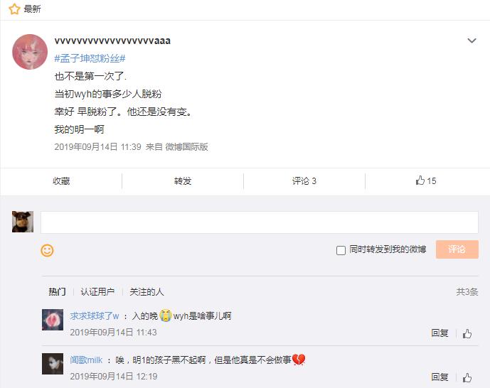 最近孟子坤的新歌发的挺好,大家在听音乐的时候,也再次回忆了解歌手孟子坤,这位前几年在音乐选秀节目《明日之子》上面出尽风采的歌手,之后的《中国新说唱》也有精彩的表现,最近这几天在《一周说唱歌手》中也表演了新歌,反响十分热烈。但是这任然没有让网友忘记评论他之前的wyh事件,这是个什么事件,另外孟子坤包露佳什么关系怎么认识的? 孟子坤wyh事件是什么, 孟子坤wyh事件是说孟子坤和一个名字拼音缩写是wyh的女生谈恋爱,网上关于孟子坤恋爱的消息不少,但几乎都是捕风捉影,没有真凭实图的,有关于孟子坤的很多节目表现,都会被说是因为女朋友的关系,像是录节目的时候跑出去了,说是去找女朋友了,有时候会传说孟子坤和女友分手了,还在机场直播哭。 然而这一切,没有照片,没有视频,甚至没有女方的名字,就一个wyh代表,说是在宿舍的时候,孟子坤给wyh涂鸦鞋子,和wyh在车内秘密牵手,之所以用wyh表示该女生是因为孟子坤的鞋子上有一个wyh的字样,看上去就是一个女生名拼音缩写,这件事让孟子坤的粉丝们很不满,大家纷纷对孟子坤和这个wyh留言责骂,产生了一些列的网络热议事件。 孟子坤包露佳什么关系怎么认识的? 孟子坤包露佳应该是有一段时间的恋爱关系,虽然网上传了不少,而很多网友表示不相信是真的,自己的爱豆不可能恋爱,但是根据很多照片和网友分析来看,两人应该是在一起过的,至于是怎么认识的,就保密的比较严谨了,毕竟现在对于孟子坤相关的感情对象都是他粉丝攻击的目标,相关内幕还是保密就好,但不管怎么说,现在的两人应该是分开了,大家更多的应该是去关注孟子坤的作品,欣赏他的才艺。
