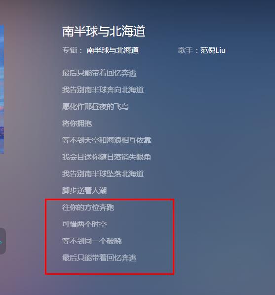 《南半球与北海道》这首歌目前是抖音上音乐排行第一名的歌,超过了张同学的BGM《Aloha Heja He 》有超过265.34万人在使用这首歌,听过这首歌的网友都有种感觉就是很温暖,还有网友说:“我好像在梦里听过这个旋律 然后我忘了之后脑子里一直闪闪闪”,十分洗脑。这首歌的歌词意境,以及歌名字的感觉都有点像欧得洋的《孤单北半球》。从歌词的意思来看,很明显《南半球与北海道》这首歌是表达意境“爱而不得”的情感,爱你却追不到你,所有的一切只能:“带着回忆奔逃”。