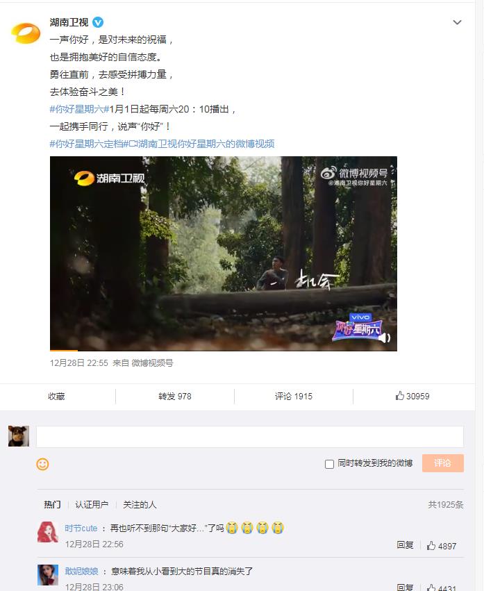 湖南卫视每周六晚的《快乐大本营》现在升级改版后成为《你好星期六》。对应的快乐大本营这档节目将彻底跟观众说再见了,新的节目将于1月1日起每周六20:10播出。而主持人阵容也发生了重大变化,从原来的六位变回了五位,但人员已经不是从前的快乐家族了,只有何炅一人留下担任主持,外加蔡少芬、秦霄贤、王鹤棣、布瑞吉四位常驻嘉宾。