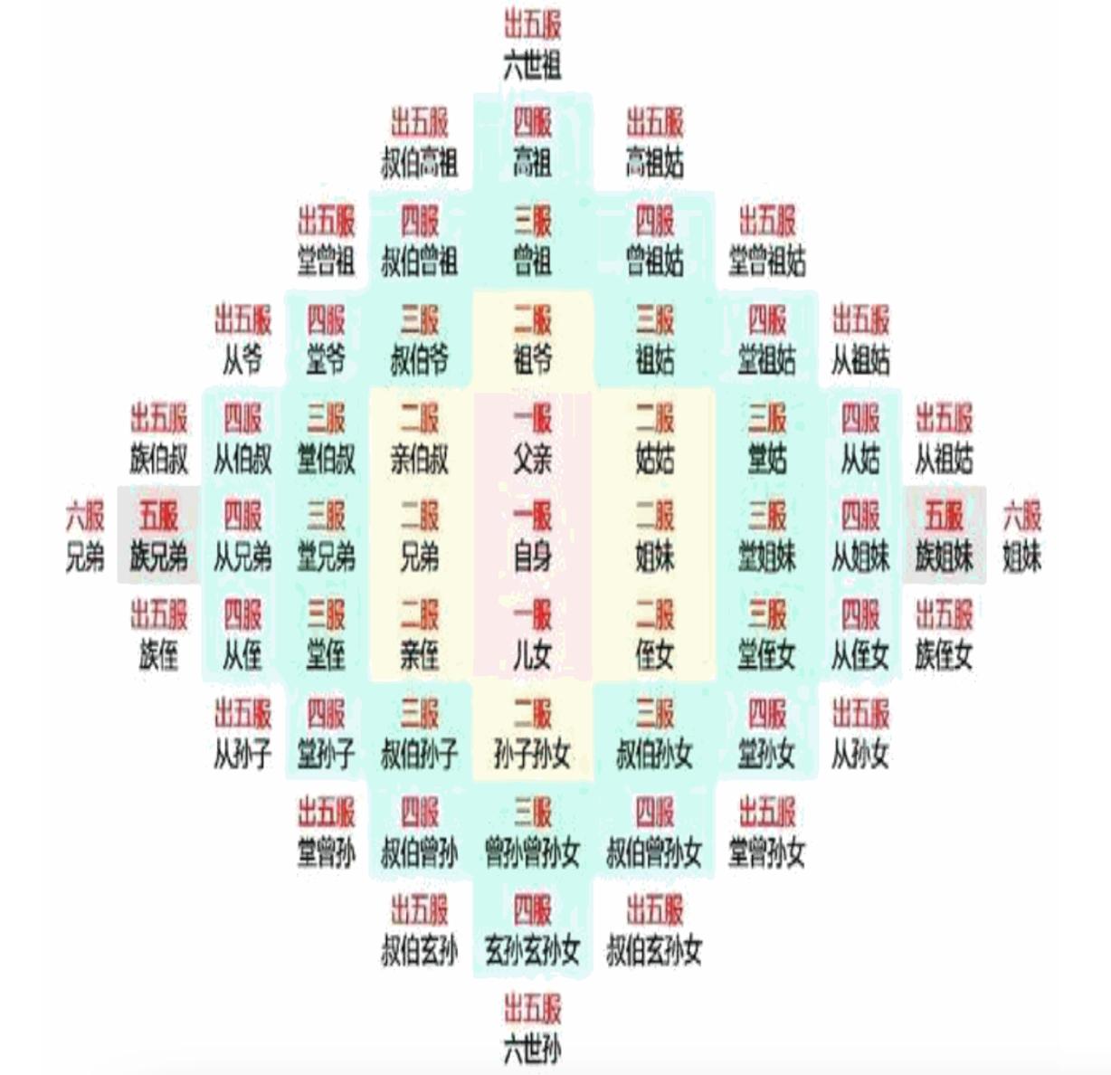 氏族文化在中国有着很久远的历史,中华民族上下五千年的文明进程中,家族文化随处可见,古代宗族的影响力甚至要比朝廷还要大,因此诞生了很多具有民族特色的文化,比如说家谱、家规、五服和九族等,那么所谓的五服指的是几代人? 尊老爱幼是中华民族的传统美德,而这些文化的产生,都离不开辈分的问题,辈分决定了一个人在家族中所处的地位,是家族文化最基础的东西,这涉及到了伦理问题,就不一一细说了,因为辈分的问题,才出现了亲族体系,也就是人们常说的五服和九族,出了五服的亲戚,就已经不算是近亲了,那么出五服是几代人? 所谓的五服,指的是以自己为坐标,往上数四代人,再往下数四代人,就是高祖父母、曾祖父母、祖父母、父母、自己、儿子、孙子、曾孙和玄孙,都是在五服之内的,其实兄弟姐妹也在五服之内,只是古代以父族为尊,所以母族只能居后,简单来说,五服就是自高祖至玄孙的所有男性及其配偶,也被称为本宗九族。 五服辈分表格图解 五服之外的亲族,指的是高祖至玄孙以外的亲缘,比如说六世祖和六世孙,就是已经出了五服了,而堂曾叔伯或者堂曾孙,也是已经在五服之外,所以听起来这些很亲的族人,其实已经不算在九族之内了,古代人对于五服内的亲戚和五服外的亲戚,是不同态度的,所以宗族社会下,五服之内的关系比我们想象的要亲近得多。 五服辈分表格图解