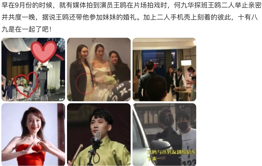 开年以来德云社可以说是风波不断,先是张九南被妻子锤出轨家暴,后有何九华传出恋情,最近郭麒麟有多次被拍到和不同女子同框,这一连串的传闻可以说让德云社受到了很多质疑,其中最让小编震惊的,就是何九华和王鸥的绯闻,因为在小编的印象中,他们好像是两个世界的人。 其实早在年前,就有狗仔拍到过王鸥和一名男子同款的画面,只是当时有猜测是何九华,不过大多数人都相信,后来又被拍到王鸥带着何九华去参加了她妹妹的婚礼,两人的手机壳上有彼此的名字,因此这才让网友确定两人的关系,不过至今为止,他们对于这段恋情都没有回应过。 可能很多人认识王鸥,都是从《琅琊榜》开始的,其实在这之前,王鸥就已经拍过很多戏了。王鸥出生于广西南宁市,如今已经39岁,父母在她三岁时离婚,后来王鸥就被寄养在邻居家中,因此王鸥的性格很独立,很早就开始赚生活养活自己,其实王鸥一开始是学民间舞的,后来机缘巧合做了模特,2005年正式进入影视圈,做了一名演员。 何九华女朋友王鸥资料 其实很多人对王鸥的印象,是她和刘恺威的夜光剧本事件,所以这次她和何九华传出绯闻,有人祝福,有人反对,有人则恶意中伤,和王鸥比起来,何九华要简单的多,网传何九华是个富二代,原名何健,北京本地人,他父母都是生意人,具体做什么的就不知道了,据说他家里条件非常不错。